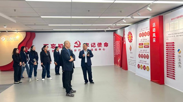 交流人員實地參觀了江蘇銀行黨建文化展廳,詳細了解其“紅色引擎”工程建設成果,重點觀摩了“黨建+大數(shù)據(jù)”風險防控系統(tǒng)、智能財務核算平臺等數(shù)字化轉型標桿項目,直觀感受科技賦能下黨建與財務業(yè)務融合的創(chuàng)新實踐。同時,雙方圍繞黨建與業(yè)務深度融合等議題展開探討,分享了在黨建引領下財務精細化管理、資金高效運作、風險精準防控等方面的寶貴經(jīng)驗。
