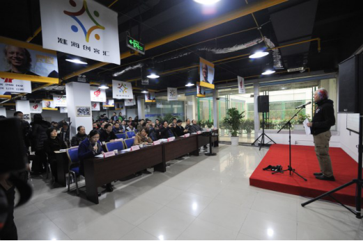 美國(guó)的創(chuàng)客教父米奇•奧特曼在淮海創(chuàng)客匯作創(chuàng)業(yè)指導(dǎo)