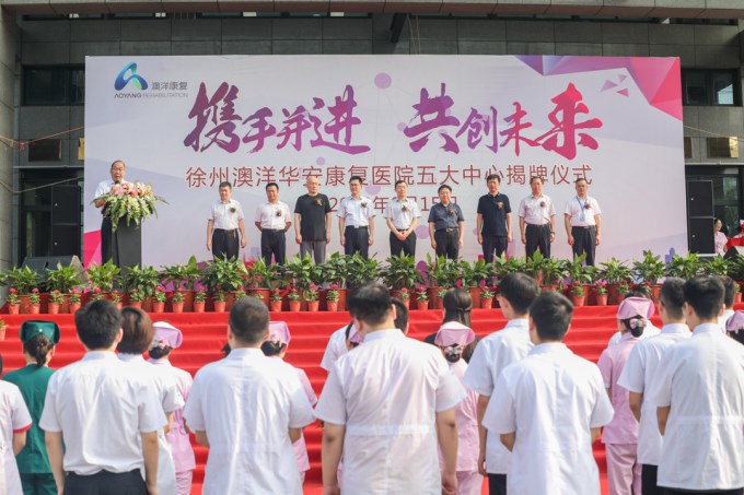 8月15日,在對(duì)外營(yíng)業(yè)一周年之際,徐州澳洋華安康復(fù)醫(yī)院隆重舉行“五大中心”揭牌儀式。徐州市鼓樓區(qū)區(qū)委常委、副區(qū)長(zhǎng)趙勝忠, 徐州市鼓樓區(qū)衛(wèi)生計(jì)生委主任劉宗維,徐州市第一人民醫(yī)院副院長(zhǎng)鄂云翔,徐州市鼓樓區(qū)衛(wèi)生計(jì)生委黨委委員曹志輝,江蘇澳洋集團(tuán)董事、副總裁遲健,集團(tuán)公司黨委書記、董事長(zhǎng)李曉東,黨委委員、副總經(jīng)理翟靜以及鼓樓區(qū)相關(guān)委辦局、街道領(lǐng)導(dǎo),徐州各大醫(yī)院代表與社會(huì)各界嘉賓出席了揭牌儀式。遲健、李曉東、趙勝忠分別致辭。