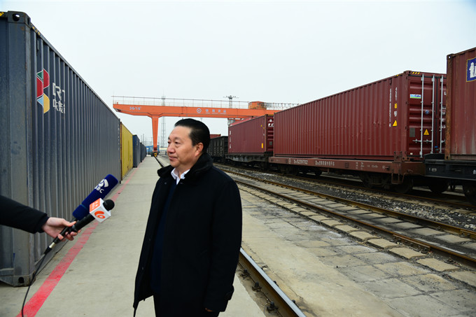 在活動(dòng)現(xiàn)場(chǎng),李曉東介紹了徐州號(hào)中歐班列開(kāi)行計(jì)劃。隨后,接受了江蘇電視臺(tái)的現(xiàn)場(chǎng)采訪。2015年12月22日,第一列徐州中歐班列拉響汽笛,經(jīng)過(guò)三年多的培育發(fā)展,截至目前已累計(jì)開(kāi)行105列,累計(jì)貨運(yùn)量居全省第三位,成為淮海經(jīng)濟(jì)區(qū)具有較大影響力的運(yùn)輸品牌,帶動(dòng)了我市工程機(jī)械、建材、小商品及農(nóng)產(chǎn)品等對(duì)歐亞地區(qū)的出口,促進(jìn)了木材、棉紗等進(jìn)口,為我市產(chǎn)業(yè)升級(jí)和外向型經(jīng)濟(jì)發(fā)展做出巨大貢獻(xiàn),有力鞏固了徐州在淮海經(jīng)濟(jì)區(qū)的中心城市地位,提升了影響力。