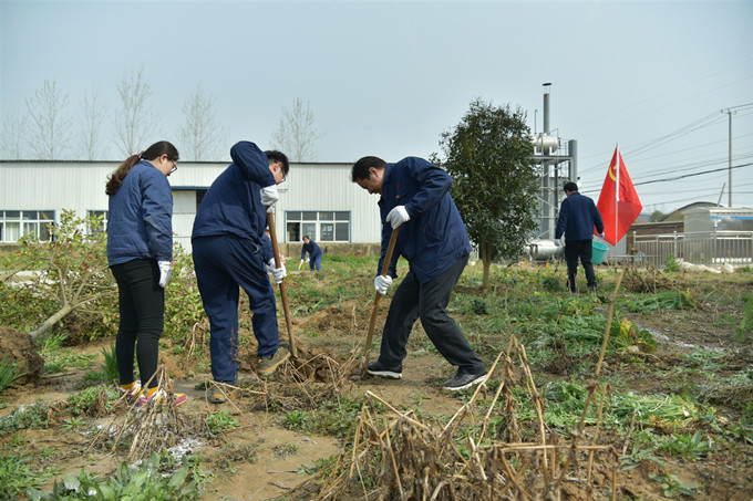 在植樹現(xiàn)場,黨員干部自發(fā)分組,各有分工,有的揮鋤挖土,有的扶苗填坑,有的揮鍬培土,有的夯實(shí)土層,有的拎桶澆水,一絲不茍,干勁十足。經(jīng)過一番熱火朝天的勞動,一棵棵新栽的苗木迎風(fēng)挺立,傳遞著春的生機(jī)與活力,也為遠(yuǎn)大玻纖廠區(qū)內(nèi)增添了一道亮麗的風(fēng)景線。