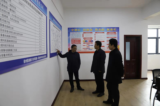 在新沂市阿湖鎮(zhèn),高翔實地調(diào)研了國湖公司一期90MW風電項目升壓站建設情況,詳細了解了國湖公司風電項目投資規(guī)模、投資收益、各項工作進度等情況,并在新沂市阿湖鎮(zhèn)便民中心開展座談交流。高翔指出,徐州國投集團作為市屬產(chǎn)業(yè)投資集團,企業(yè)發(fā)展勢頭較好、產(chǎn)業(yè)投資積極向上、員工拼搏干勁十足,在產(chǎn)業(yè)投資上取得了一定的成績。國湖公司投資的新沂市阿湖鎮(zhèn)一期90MW風電項目作為可再生新能源行業(yè),投資規(guī)模較大,要重點做好如下四項工作:一要強化黨的建設。國湖公司作為徐州國投集團的三級企業(yè),要按照“國有企業(yè)經(jīng)營到哪里、黨組織就跟進到哪里”的原則,著重加強企業(yè)黨組織建設,強化黨組織的政治引領、思想引領、組織引領,要將國湖公司黨的建設與風電項目施工相互融合、相互促進,要接好“全面從嚴治黨壓力傳導層層壓緊壓實”這個接力棒。二要強化作風建設。國湖公司作為產(chǎn)業(yè)投資的執(zhí)行者,要更加堅決貫徹落實中央八項規(guī)定精神,進一步強化班子領導的帶頭表率作用,推動落實中央八項規(guī)定和實施細則精神常態(tài)化、長效化;要從小事抓起、從小處著眼,思想上繃緊弦、行動上管住腿,堅決做到不違規(guī)、不逾矩。三要強化流程意識。國湖公司要按照國有資產(chǎn)保值增值的要求,依規(guī)依法做好國有資產(chǎn)的管理工作;要嚴格按照“三重一大”實施辦法要求,強化黨的研究前置程序,進一步規(guī)范投資決策流程,確保做到信息透明、標準規(guī)范。四要壓實“兩個責任”。國湖公司要認真組織學習市委常委、市紀委書記、監(jiān)委主任董向陽的重要批示精神,要結合“不忘初心、牢記使命”主題教育檢視問題環(huán)節(jié)要求,重點圍繞“一違三亂兩高兩低”開展全面自查自糾和專項整改落實,進一步轉(zhuǎn)變思想觀念、提高政治站位,進一步健全組織、理順關系、配齊人員,推動黨的建設向縱深發(fā)展。
