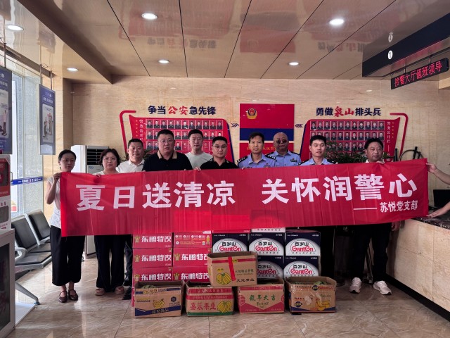 為表達對高溫酷暑中堅守崗位的公安民警的敬意與關懷,深化警企共建情誼,近日,蘇悅黨支部組織黨員代表,前往徐州市公安局泉山分局王陵派出所,開展“夏日送清涼”慰問活動,為奮戰(zhàn)在維護治安、服務群眾第一線的民警送去夏日清涼物資。在王陵派出所,蘇悅黨支部一行向派出所負…
