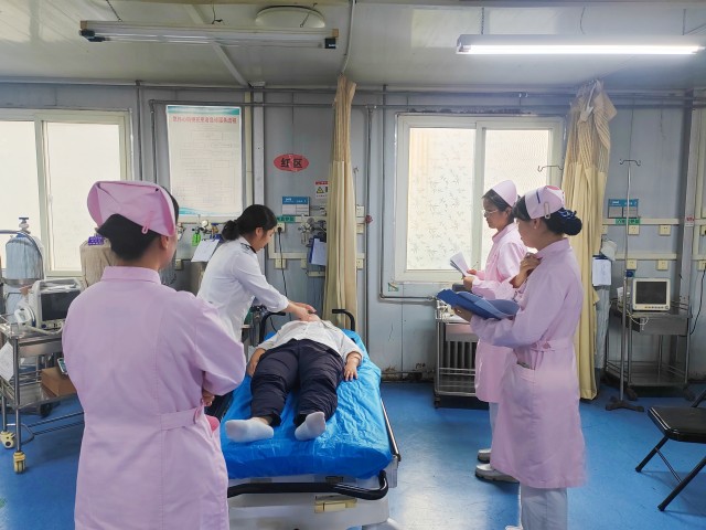 不同于單項(xiàng)技能比武,本次OSCE考核最大的特點(diǎn)是高度模擬臨床真實(shí)情境,強(qiáng)調(diào)工作的連貫性和應(yīng)急判斷能力。考核分為三站,環(huán)環(huán)相扣。第一站,護(hù)士化身為洞察入微的“偵察兵”,在有限時(shí)間內(nèi),面對(duì)由專業(yè)人員扮演的“標(biāo)準(zhǔn)化病人”,進(jìn)行詳細(xì)的病史采集和精準(zhǔn)的身體評(píng)估,此站考驗(yàn)了護(hù)士的溝通技巧和觀察能力;第二站,護(hù)士化身為精準(zhǔn)高效的“戰(zhàn)術(shù)家”,基于第一站的評(píng)估結(jié)果迅速提出核心護(hù)理問(wèn)題,并立即采取相應(yīng)的護(hù)理措施;第三站,護(hù)士化身為沉著果敢的“突擊隊(duì)”,面對(duì)患者病情驟然惡化,第一時(shí)間識(shí)別危急值,果斷采取心肺復(fù)蘇、急救用藥等緊急救治措施。這一站是考核的重中之重,直接檢驗(yàn)護(hù)士在壓力下的心理素質(zhì)、快速反應(yīng)能力和搶救技能。