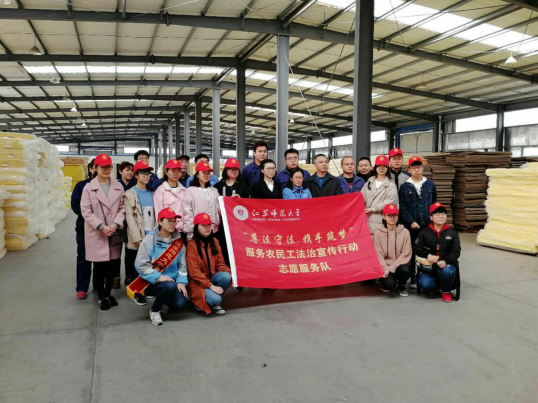 2017年11月15日,徐州市總工會法律工作部部長廖火生與江蘇師范大學法學院團委書記劉姍帶領志愿服務隊來到徐州遠大玻纖制品有限公司,開展“尊法守法,攜手筑夢”服務農民工法治宣傳活動,遠大公司組織職工與志愿服務隊進行了座談交流。