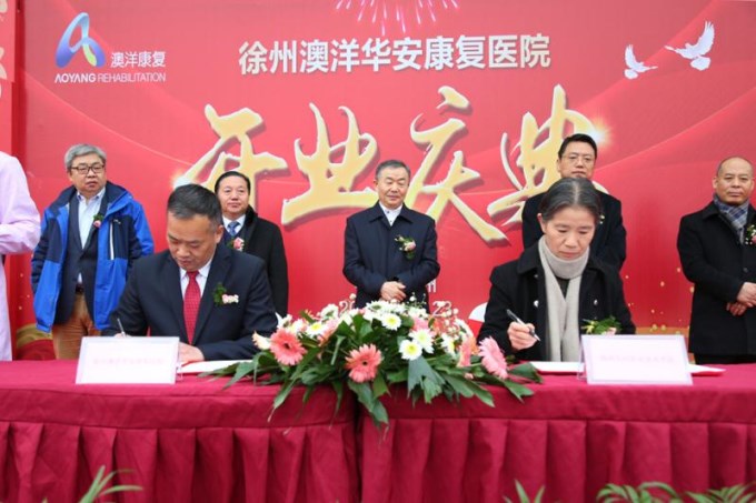開業(yè)典禮上,徐州澳洋華安康復醫(yī)院與徐州市第一人民醫(yī)院簽署了醫(yī)院醫(yī)聯(lián)體合作協(xié)議、與徐州市九州職業(yè)技術(shù)學院簽署了教學醫(yī)院協(xié)議。