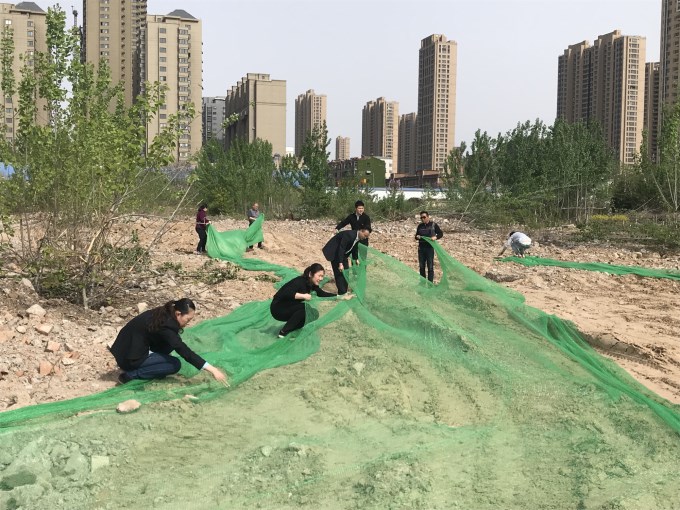 彭富黨支部書記肖明帶領(lǐng)全體黨員和入黨積極分子共12人來(lái)到義務(wù)勞動(dòng)現(xiàn)場(chǎng)。拆除區(qū)內(nèi)垃圾,亂石遍地、塵土飛揚(yáng),地面高低不平,大家不畏困難、齊心協(xié)力,經(jīng)過(guò)兩個(gè)多小時(shí)的共同努力,將20余捆共計(jì)八千余平米的防塵網(wǎng)鋪設(shè)完畢,使原本塵土飛揚(yáng)的拆除廠區(qū)煥然一新。
